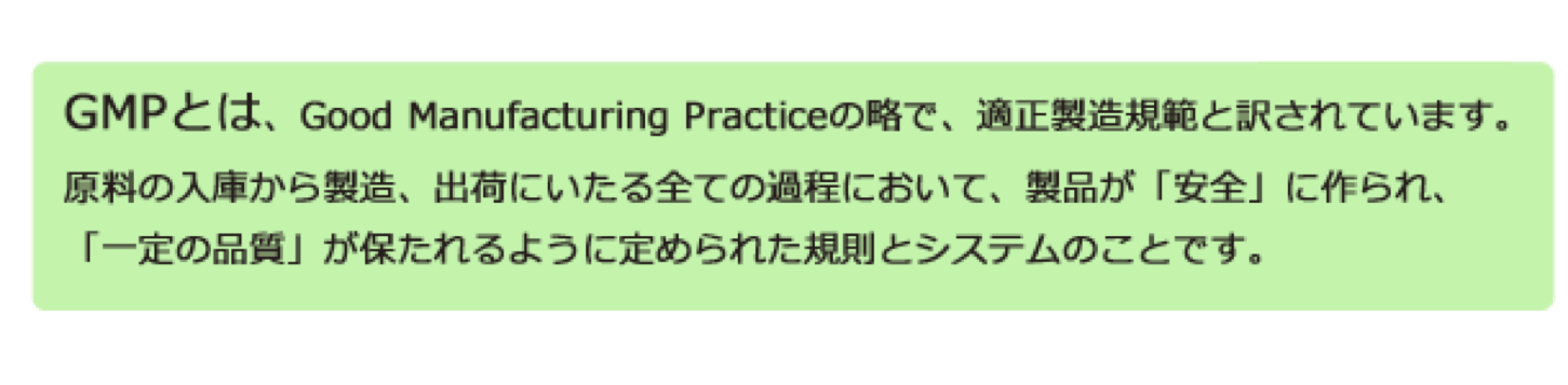製品は「原材料GMP」と「製品GMP」の適合認証を取得した当社忠岡工場で製造しています。
